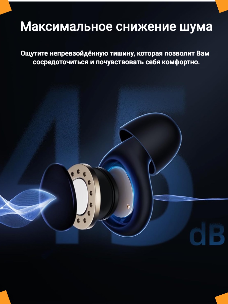 - Мощное шумоподавление 45 дБ для любых ситуаций: будь то храп партнера, звук концертных колонок, выстрелы, шум машин, звук двигателя самолета или шум ветра в мотоцикле.
