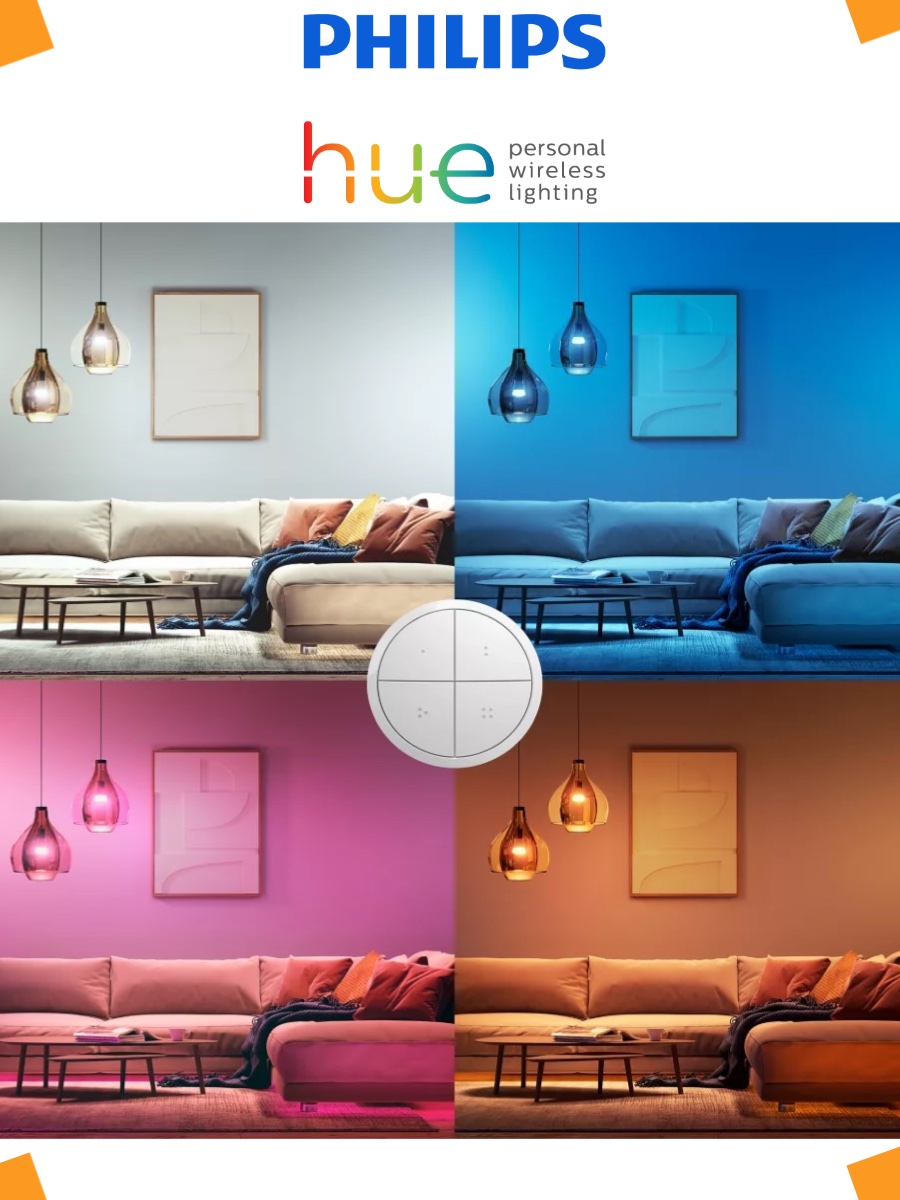 Беспроводной переключатель Philips Hue Tap- с помощью этого переключателя вы сможете управлять освещением в своем доме.