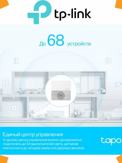 *64 устройства IoT (датчики, кнопки, переключатели Sub-1G) и четыре камеры наблюдения или видеодомофоны (например, Tapo C420, Tapo C400, Tapo D230).