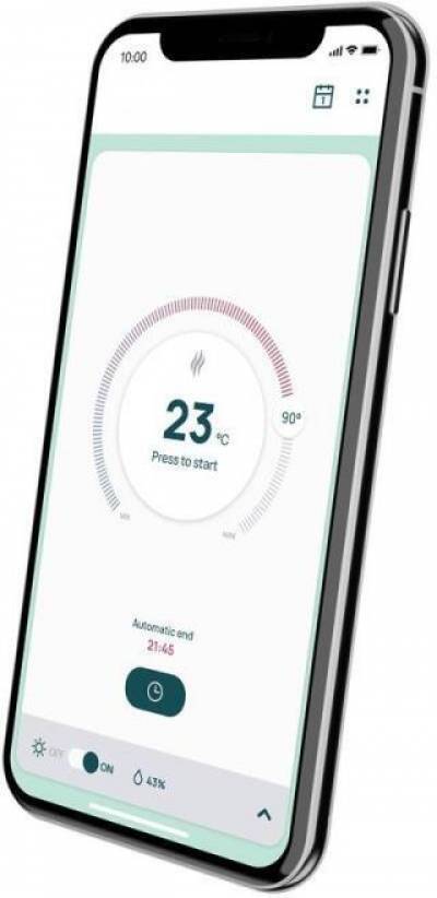 Панель управления имеет современный дисплей из черного стекла и подходит для печей до 18 кВт. Нагрев сауны никогда не был таким простым - в приложении для мобильного телефона вы можете установить время начала и окончания нагрева, выбрать температуру или просмотреть температурную кривую сауны в реальном времени.