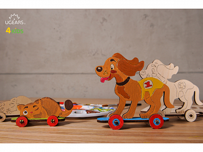 Деревянная модель-раскраска для детей UGears 4Kids Котенок и Щенок (Kitty and Puppy)