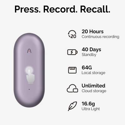 БЕЗ ЗАТРУДНЕНИЙ И ПРОБЛЕМ: PLAUD NotePin сверхкомпактен, весит всего 0,59 унции. Аккумулятор емкостью 270 мАч обеспечивает 20 часов непрерывной записи. Простая операция одним нажатием для начала или остановки записи с улучшением на основе ИИ и шумоподавлением.