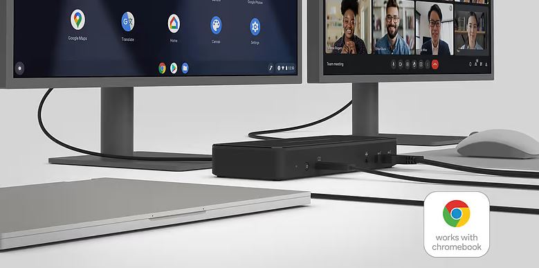 Создайте свое рабочее пространство с помощью док-станции, которая расширяет возможности подключения к офису или домашнему офису. Док-станция USB-C позволяет подключать к вашему Chromebook до двух расширенных мониторов через HDMI или DisplayPort. Эта 14-портовая док-станция обеспечивает пропускную способность до 65 Вт и скорость передачи данных 10 Гбит /с, что позволяет подключаться и работать во время зарядки ноутбука. К док-станции USB-C можно подключить внешний жесткий диск, мышь, клавиатуру, наушники и другие периферийные устройства, а также уменьшить загромождение рабочего стола с помощью одного кабеля, подключенного к ноутбуку USB-C. Она работает с сертифицированными устройствами Chromebook с возможностью установки обновлений встроенного программного обеспечения непосредственно через Chrome OS для улучшения возможностей подключения. Кроме того, она соответствует стандарту TAA для использования в широком спектре государственных приложений.