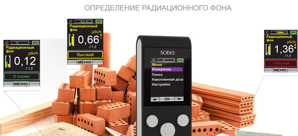 При превышении допустимых значений радиации экран станет желтым или красным. Появится предупреждение «опасный радиационный фон», включится звуковое оповещение.