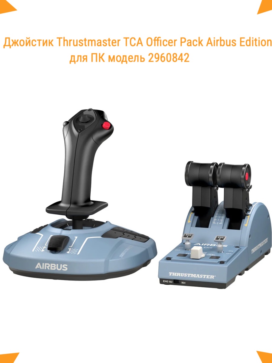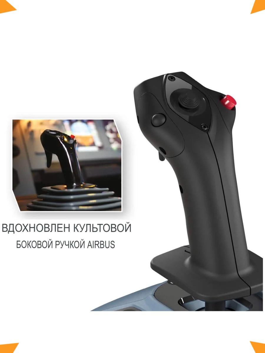 Что это такое?Джойстик Thrustmaster TCA Officer Pack Airbus Edition это эргономичные копии всемирно известного бокового контроллера и блока рычага управления Airbus. Двуручный игровой контроллер со сменными модулями включает в себя магнитную технологию, встроенную функцию пассажирского самолета, а также кнопки-копии и другие элементы управления.