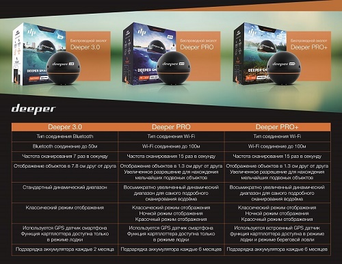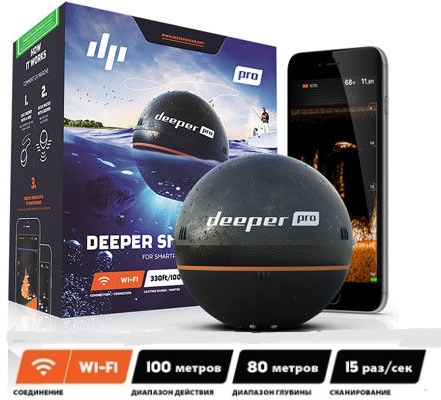 Смарт эхолот Deeper Smart Fishfinder представляет собой шар весом 100 грамм, диаметром 65 мм. Рыболокатор снабжен эхолотом с опцией двойной частоты. Сигнал передается в радиусе 15ᴼ и 55ᴼ, позволяя осуществлять точечный и широкополосный захват донной поверхности. Сонар прост в использовании, не требует предварительной настройки, нечувствителен к перепадам температуры, механическим воздействиям.