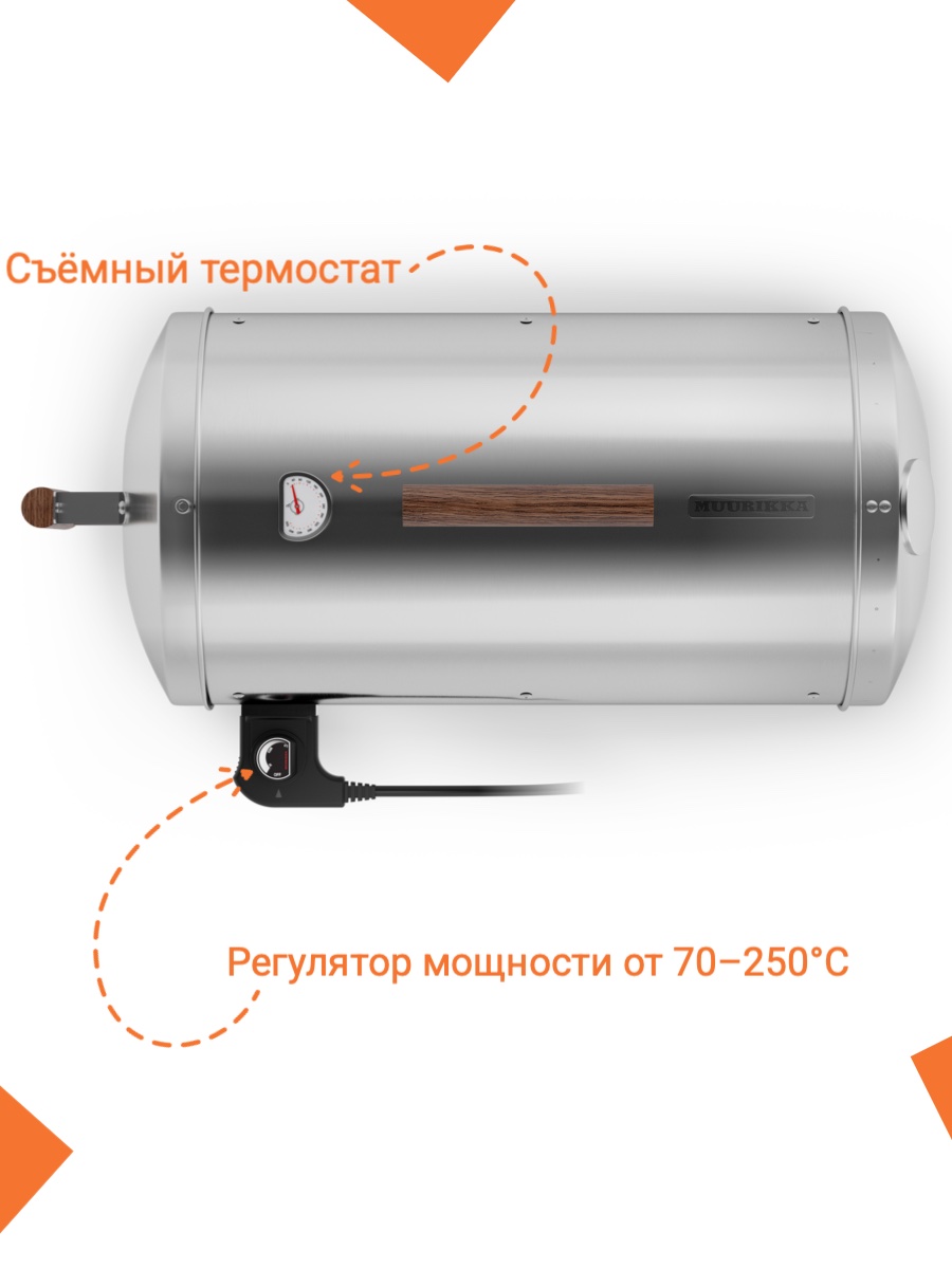 Настоящая и оригинальная электрическая коптильня Muurikka теперь в еще более универсальной версии oven PRO! Благодаря функции контроля нагрева использование электрической коптильни становится еще более универсальным: она также подходит для продуктов, приготовленных при более низкой температуре. С помощью термометра, можно точно и легко контролировать и регулировать температуру копчения.