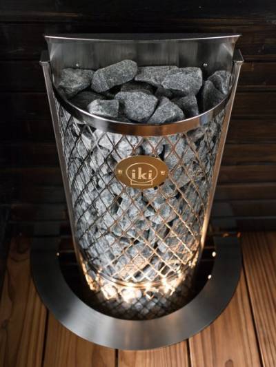 Стильный кожух из стальной сетки также не нагревается, поэтому печь безопасна в использовании. Электрокаменка IKI изготавливается вручную в Финляндии из высококачественных материалов.
