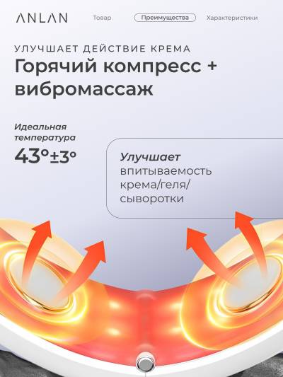 Нагреваясь до постоянной температуры 42°C, устройство раскрывает поры, улучшая впитывание активных ингредиентов, содержащихся в средствах по уходу за кожей. Тепло также помогает уменьшить отечность и корректирует линию подбородка благодаря специальной форме кольца, охватывающего 180 градусов.