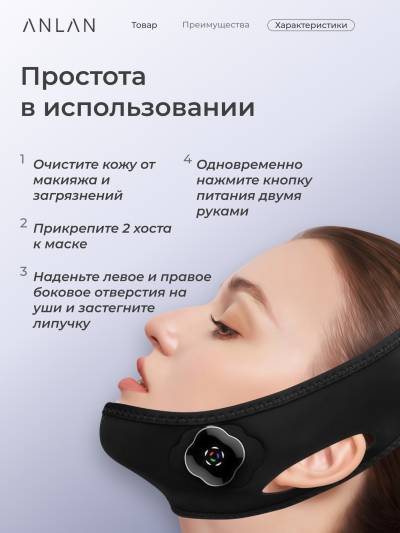 Маска «Анлан» стимулирует мышцы, делая кожу упругой и гладкой. Кроме того, она увеличивает выработку коллагена и улучшает кровообращение. Она уменьшает видимость морщин, восстанавливает эластичность и придаёт лицу V-образную форму. Теперь вы сможете дольше сохранять молодость.