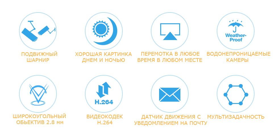 Каждая IP камера обеспечивает разрешение в 1280 х 720 пикселей (720Р), с более качественным и резким изображением, в отличие от стандартных аналоговых камер. Объектив 2.8 мм имеет широкий угол обзора и охватывает большое пространство.