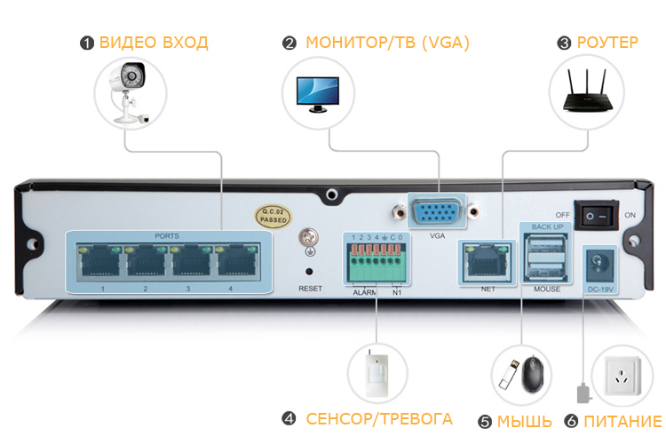 | Каналы тревоги вход/ выход | 4 канала вход/1 канал выход |