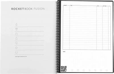 Умный блокнот Rocketbook Fusion - это многоразовая бумага, 7 шаблонов страниц и возможности переносить записи в цифровой вид.