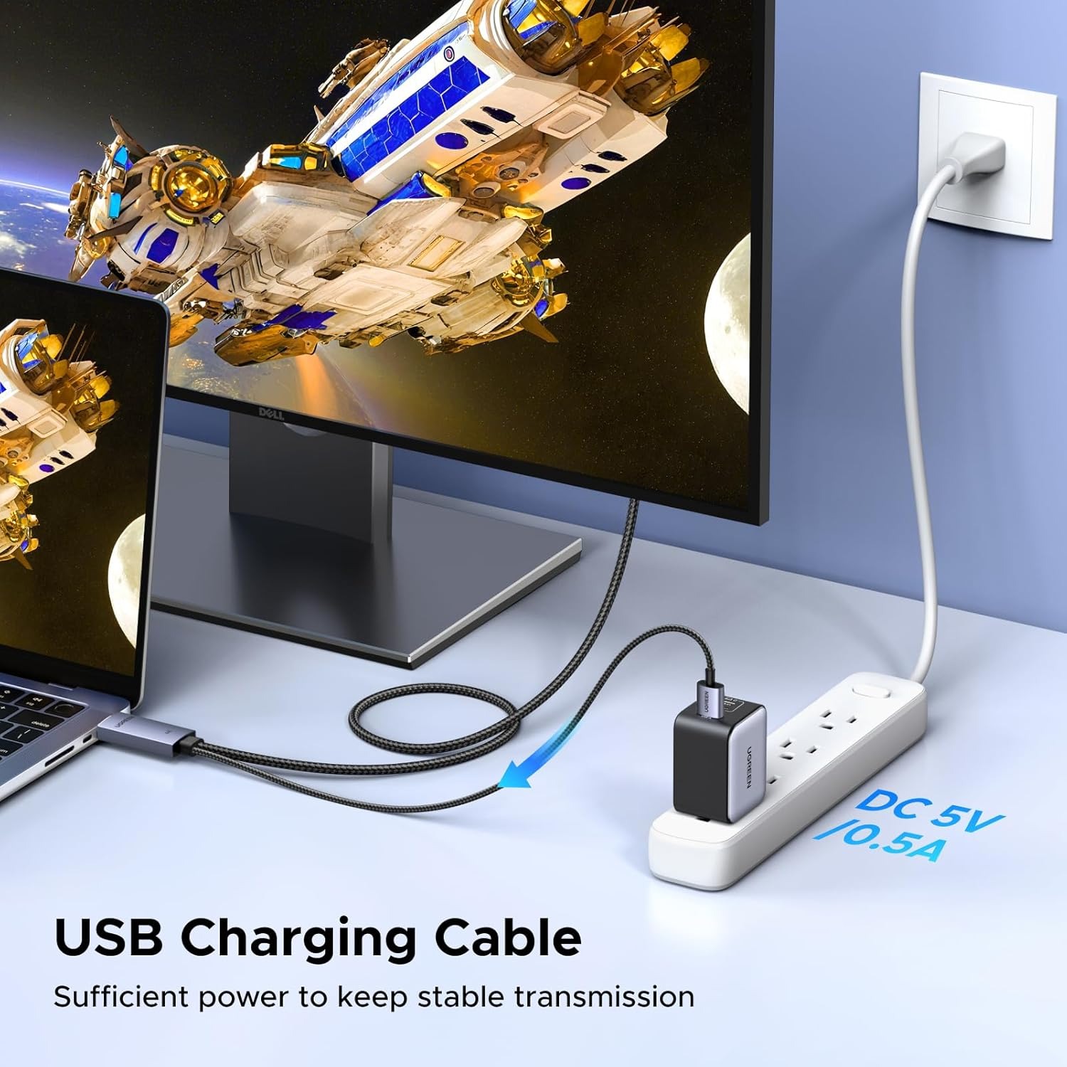 Примечание: для работы адаптера порт USB-A для зарядки на этом кабеле HDMI-DP должен быть подключен к источнику питания.