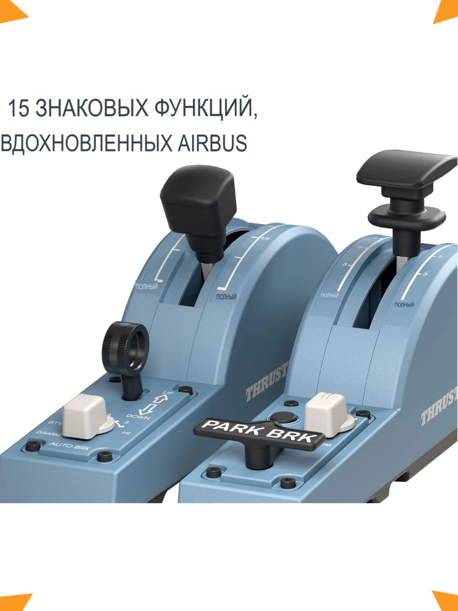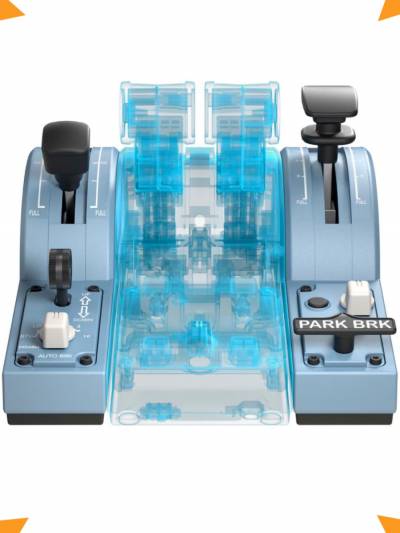 Для захватывающих дух полетов обратите внимание на боковую ручку управления TCA Sidestick Airbus Edition, рычаги управления TCA Quadrant Airbus Edition, зажим управления TM Flying Clamp и знаменитую систему руля TFRP (все продается отдельно).