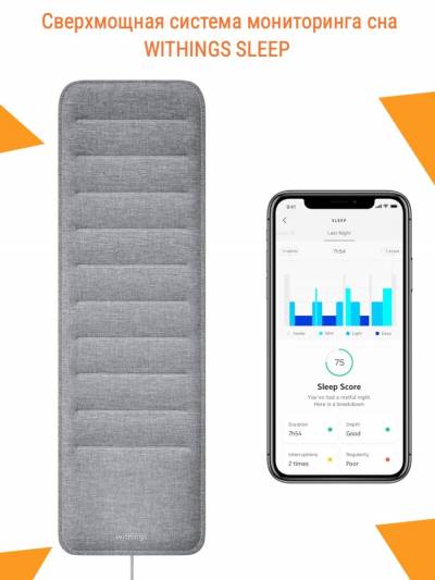 Датчик сна Withings Sleep располагается под матрасом кровати, работает от розетки и анализирует ваш сон. Он предоставляет вам расширенное отслеживание сна - получите глубокий анализ вашей ночи с циклами сна, информацию о сердечном ритме и наличии храпа.