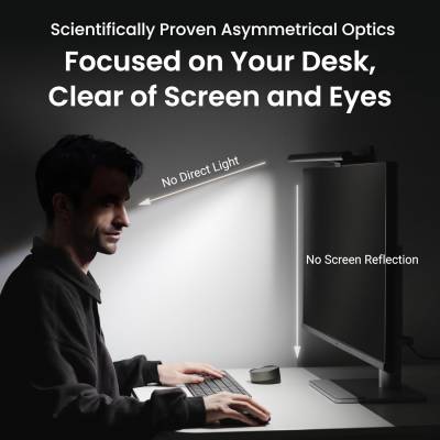 БЕЗБЛИКОВАЯ ПЕРЕДНЯЯ ПОДСВЕТКА (технология ASYM-Light): точная передняя подсветка под углом 18° с антибликовым покрытием освещает ваш стол, не отражаясь от экрана и не светя в глаза, что идеально подходит для любого монитора.