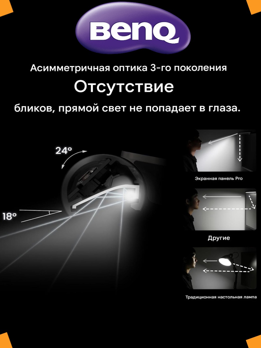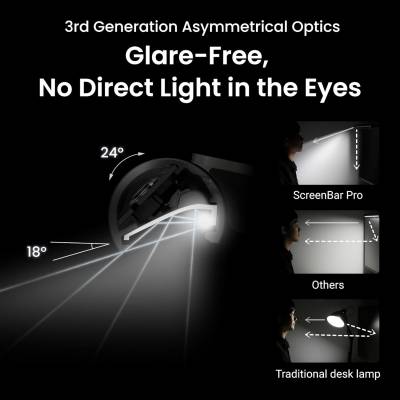 ТЕХНОЛОГИЯ ASYM-LIGHT – уникальная асимметричная оптика ScreenBar Pro предотвращает отражение на экране и прямые блики, освещая рабочий стол для повышения производительности и снижения нагрузки на глаза.