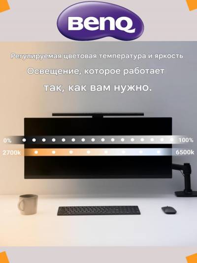 BenQ Pro ScreenBar позволяет лучше видеть ваши рабочие инструменты и документы и создает неожиданно уютную атмосферу вокруг вашего ПК.