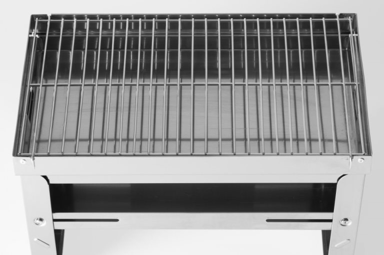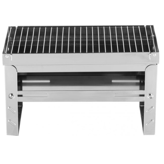 Это угольный гриль со складными ножками, который можно удобно упаковать в сумку для переноски и взять с собой на пикник. Решетка и рама решетки изготовлены из нержавеющей стали.