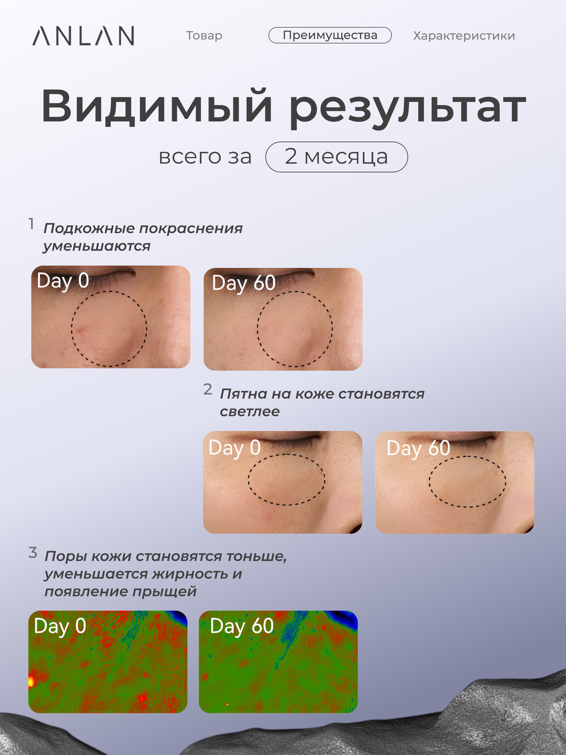 Эффективная стерилизация фиолетового света, подавляет воспаление кожи, ускоряет заживление прыщей, помогает восстанавливать следы от прыщей.