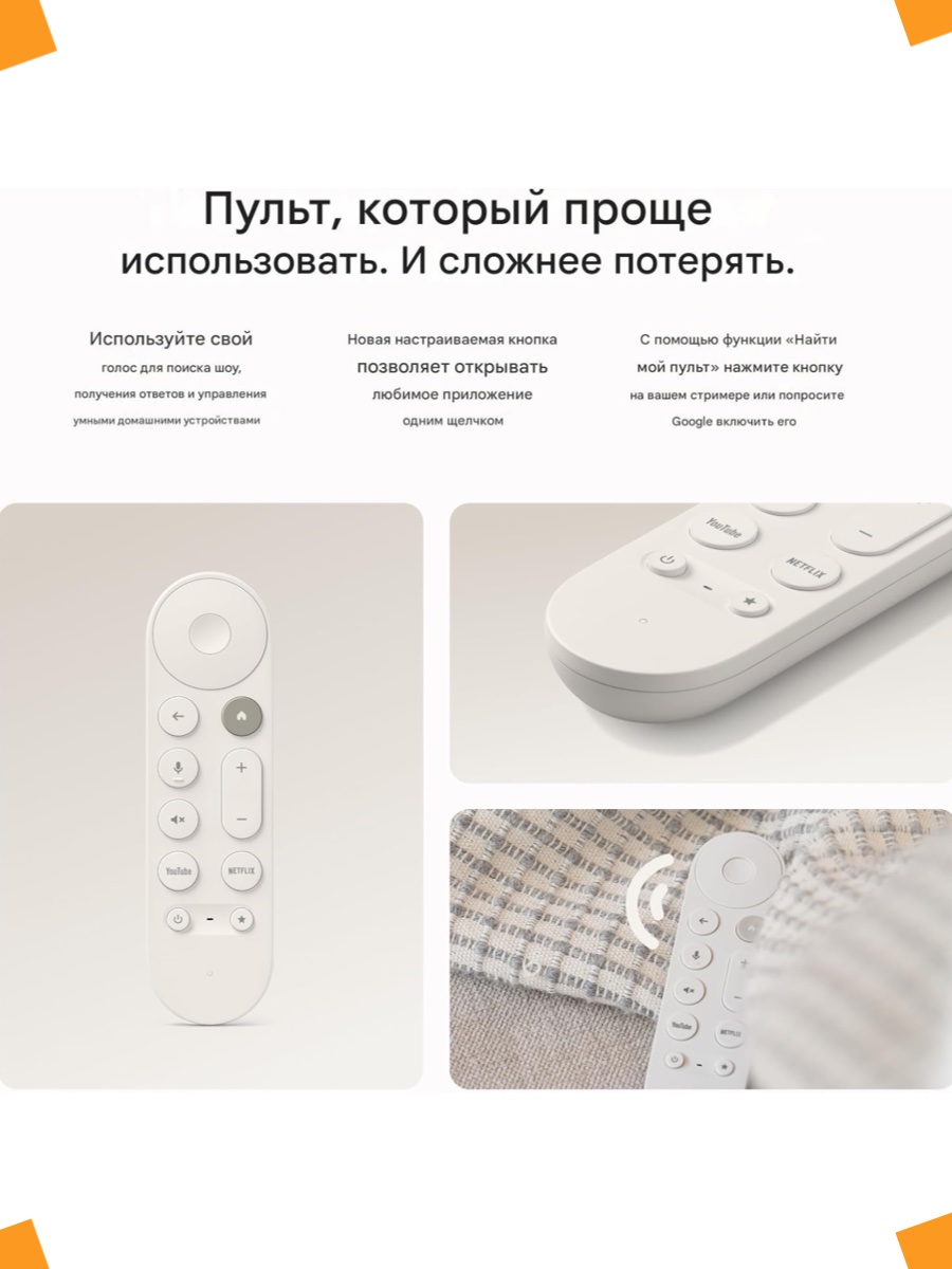 Обновленный голосовой пульт ДУ: используйте голосовые команды для поиска шоу, управления смарт-устройствами и настройки кнопки для быстрого доступа к приложениям; найдите пульт ДУ, включив его звонок.