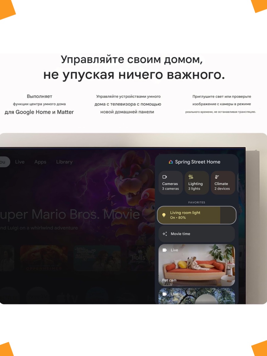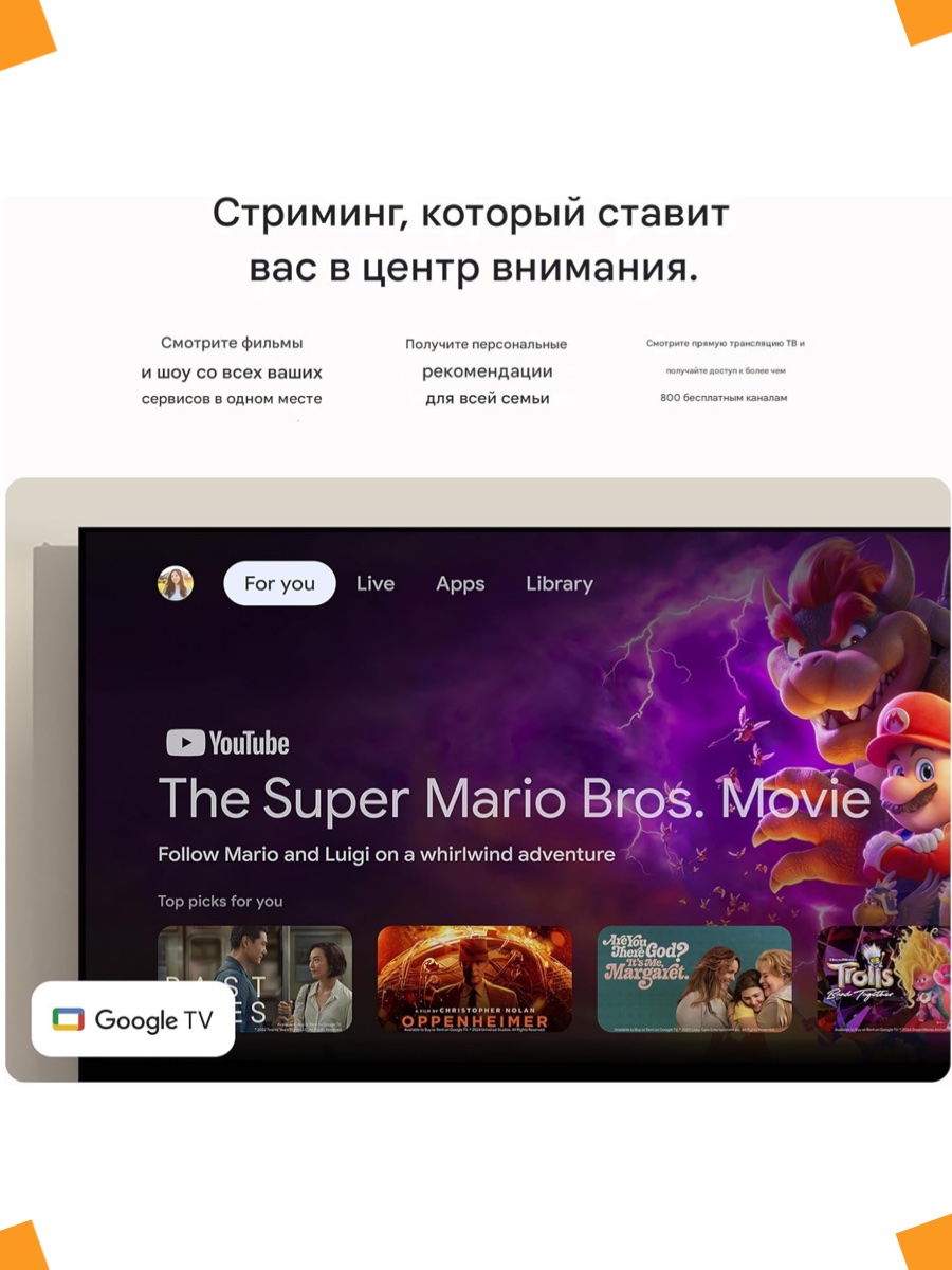 Прямая трансляция и бесплатные каналы: получите доступ к более чем 800 бесплатным каналам, включая Pluto TV и Tubi, и легко добавляйте контент в свой список просмотра с телевизора, мобильного приложения или поиска Google.
