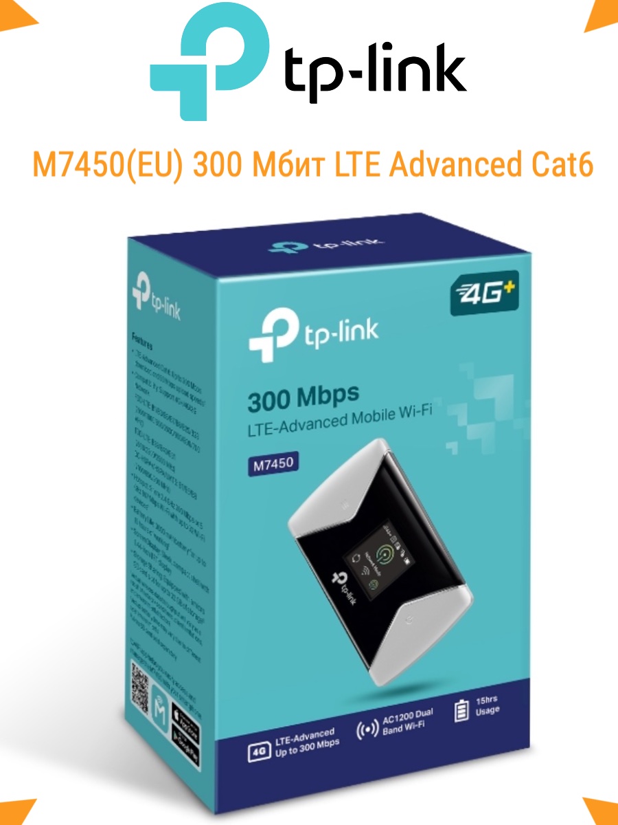 TP-Link M7450 - портативный роутер Wi‑Fi N300 с поддержкой LTE Advanced категории 6 с максимальной скоростью скачивания 300Мбит/с.