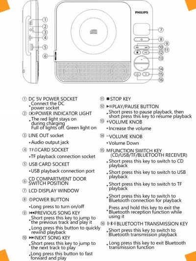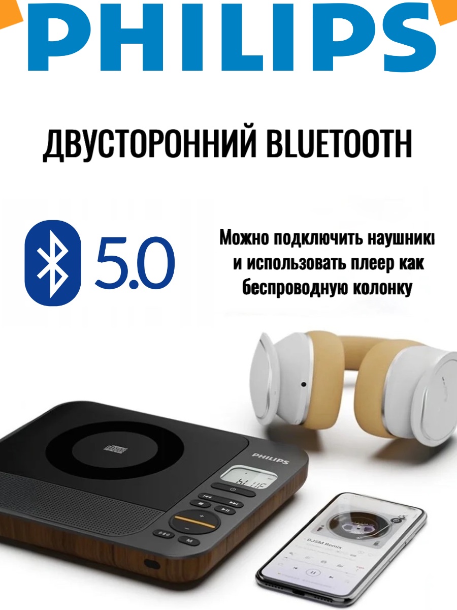 Портативный MP3-CD плеер Philips с Bluetooth и колонкой (EXP5608BN)