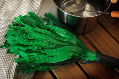 Веник Relax легко очистить, капнув пару капель мягкого моющего средства (например, шампуня) в воду. Затем вспенить, промыть веник и повесить сушиться.