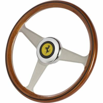 Эта роскошная реплика 8:10 диаметром 33 см изготовлена из высококлассных материалов, включая прочный металлический каркас (с обеих сторон облицованный покрытием из натурального дерева), хромовую табличку с логотипом и эффектную центральную пластину из металла, что позволяет прикоснуться к богатой истории бренда Ferrari.