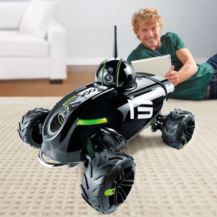 Вездеход Rover Revolution от фирмы Brookstone совместим с устройствами, работающими на платформах IOS и Android. Специальной формы колеса позволяют игрушке преодолевать различные препятствия и быстро передвигаться по грунту любого типа.