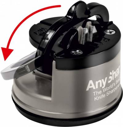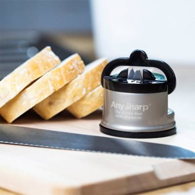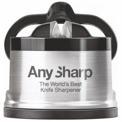 AnySharp очень безопасна и проста в использовании - все, что вам нужно для заточки - это легкое нажатие ножа в паз точилки. Безопасность также повышается за счет удобного и надежного крепления на присоске.