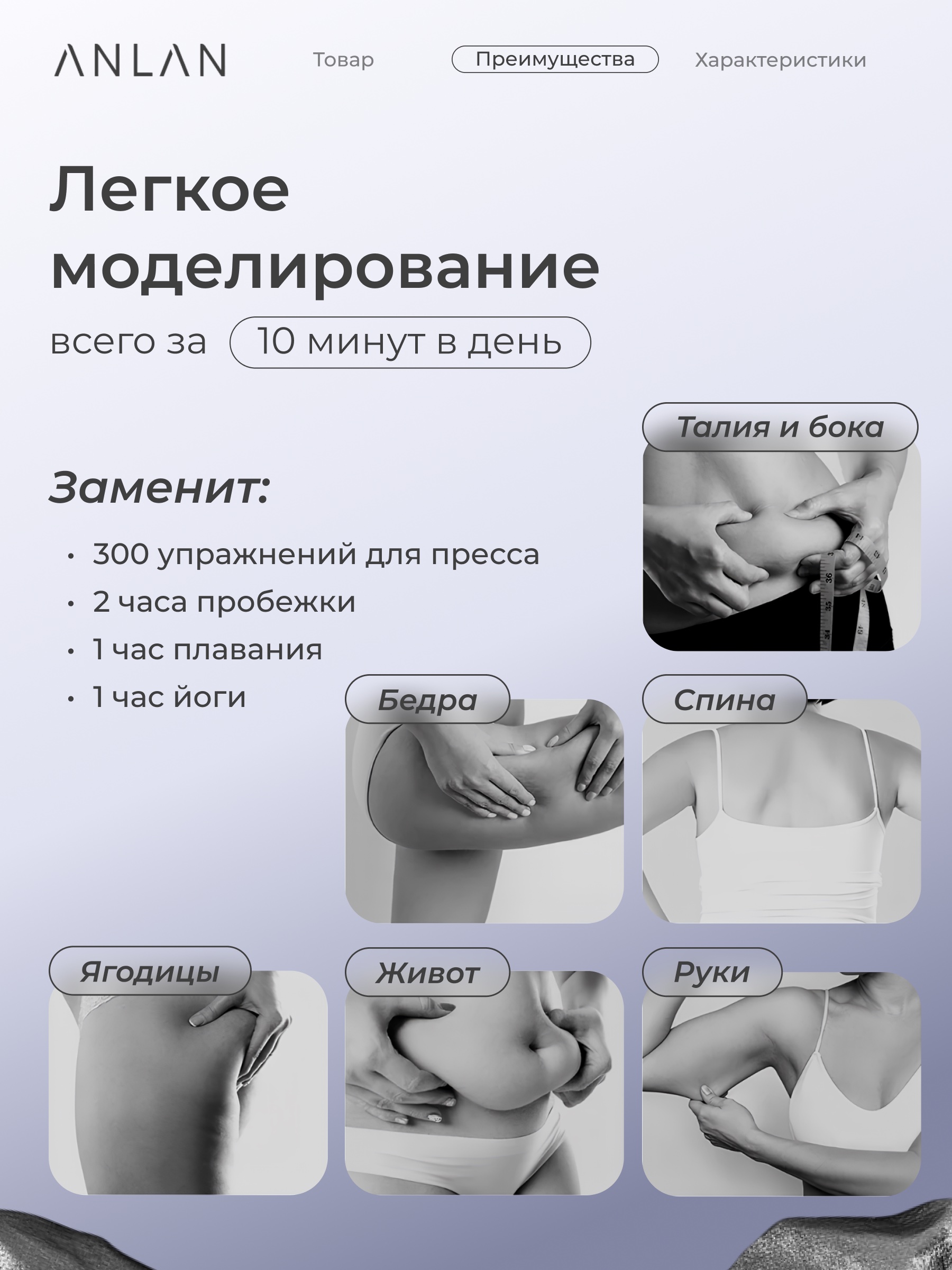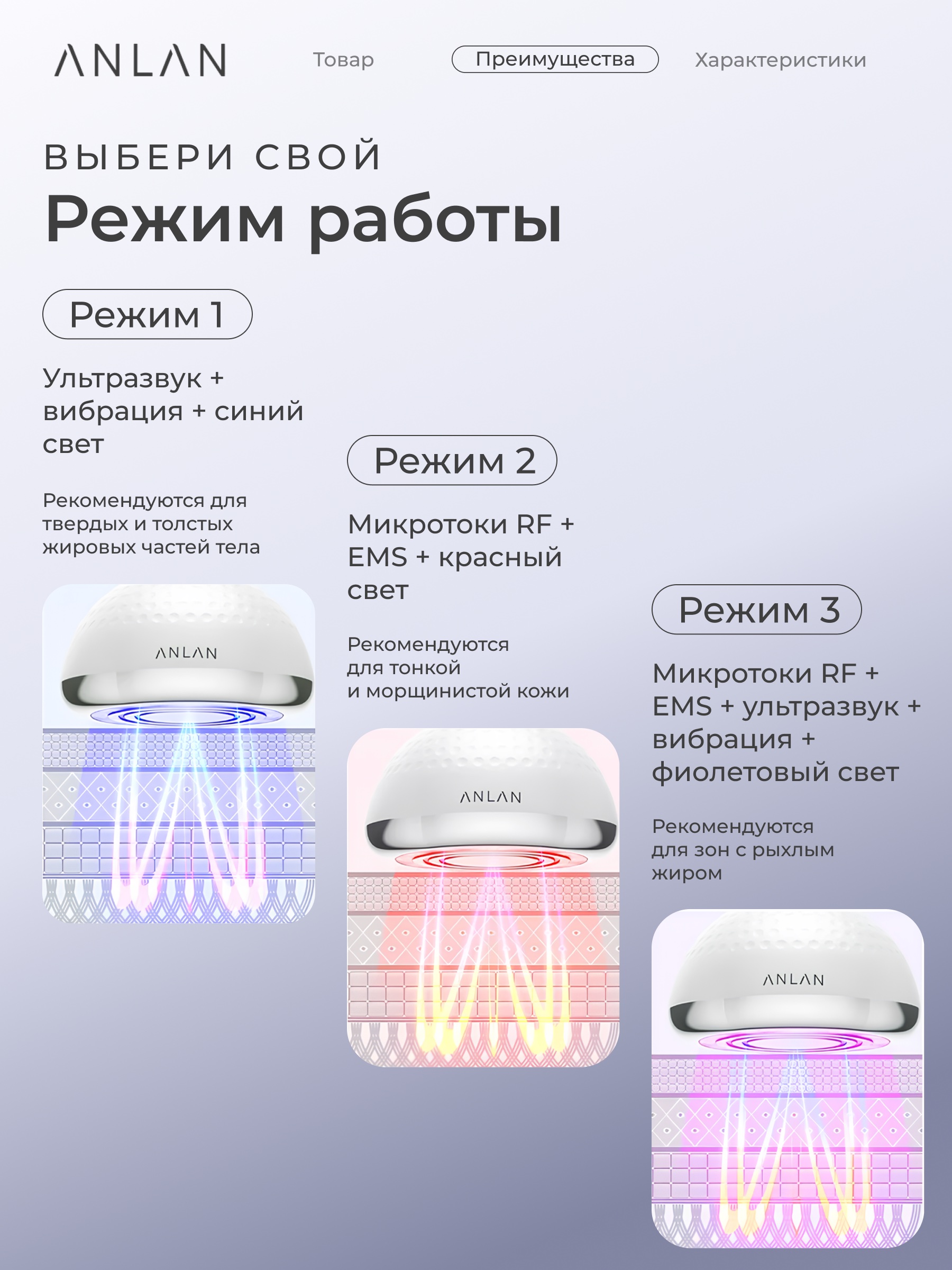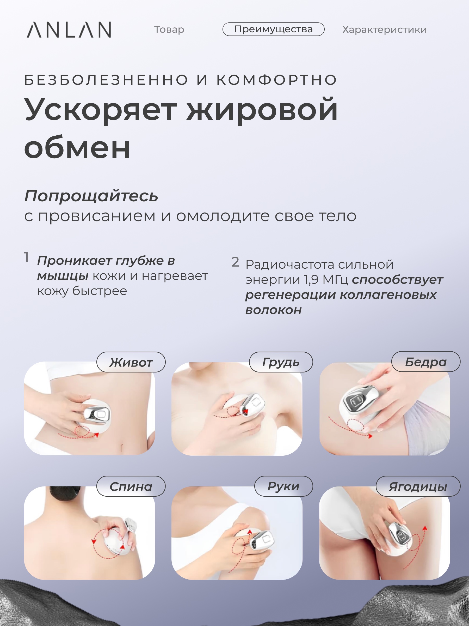 Ультразвуковой массажёр ANLAN для похудения RF-лифтинг кавитация EMS антицеллюлитный (02-AXTY31-02A)