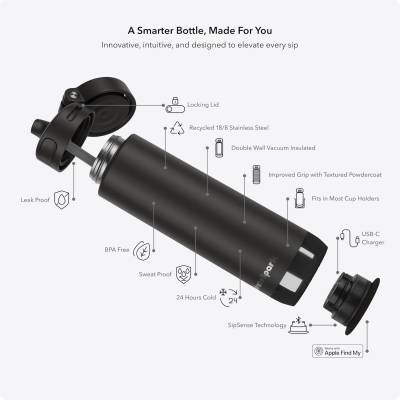 Поддерживайте водный баланс, как никогда раньше, с бутылкой HidrateSpark PRO 2 объёмом 621 мл — самой умной в мире бутылкой для воды из высококачественной переработанной нержавеющей стали. Двойные стенки с вакуумной изоляцией сохраняют напиток холодным до 24 часов, а технология SipSense в датчике отслеживает каждый глоток и напоминает вам, когда пора пить, с помощью настраиваемой круговой подсветки и дополнительных звуковых оповещений. Синхронизируйте потребление воды с приложением HidrateSpark по Bluetooth, чтобы отслеживать свой прогресс, устанавливать персональные цели и даже находить бутылку с помощью функции «Apple Find My» от Apple.