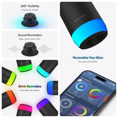 УМНЫЕ НАПОМИНАНИЯ О НАПИТКАХ (СВЕТЯЩИЕСЯ И ЗВУКОВЫЕ) – Поддерживайте водный баланс благодаря настраиваемым световым оповещениям на 360° и дополнительным звуковым напоминаниям о времени питья. Настройте цвет, узор и время свечения, а также тип, частоту и громкость звука.