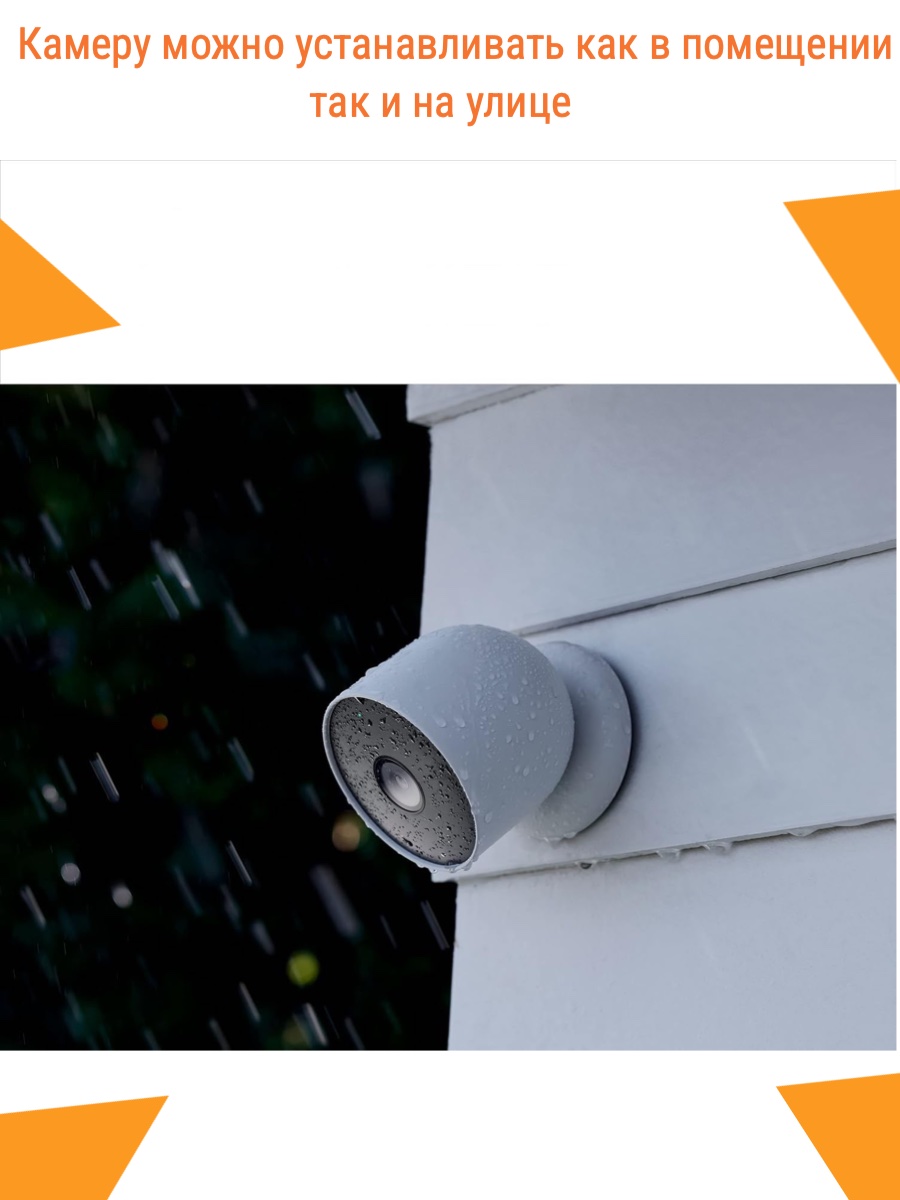 Беспроводную камеру безопасности Google Nest Cam можно разместить где угодно, как в помещении, так и на улице. Устройство поддерживает Google Home и имеет двустороннюю связь.