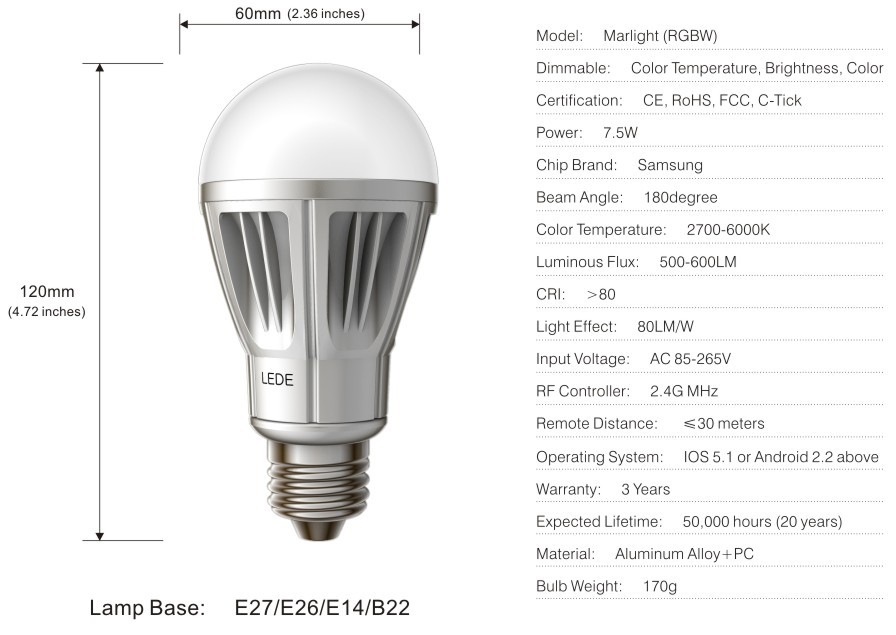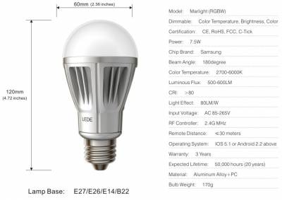 Wi-Fi лампочка, позволяющая управлять освещением с помощью вашего смартфона (необходим Wi-Fi коннектор) или специального пульта.Для синхронизации Marlight со смартфоном следует: