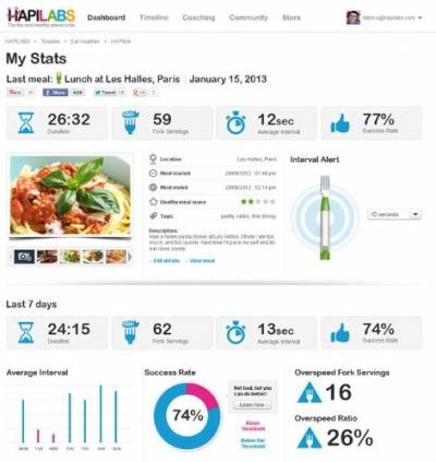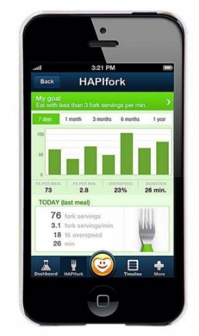 Помочь справиться с проблемой слишком быстрого приема пищи призвана «умная» электронная вилка HAPIfork от французского инженера Жака Лепена (Jacques Lepine) и компании HAPILABS, анонсированная на выставке CES 2013. Оснащенная системой сенсоров и позволяющая контролировать поведенческие факторы за столом.
