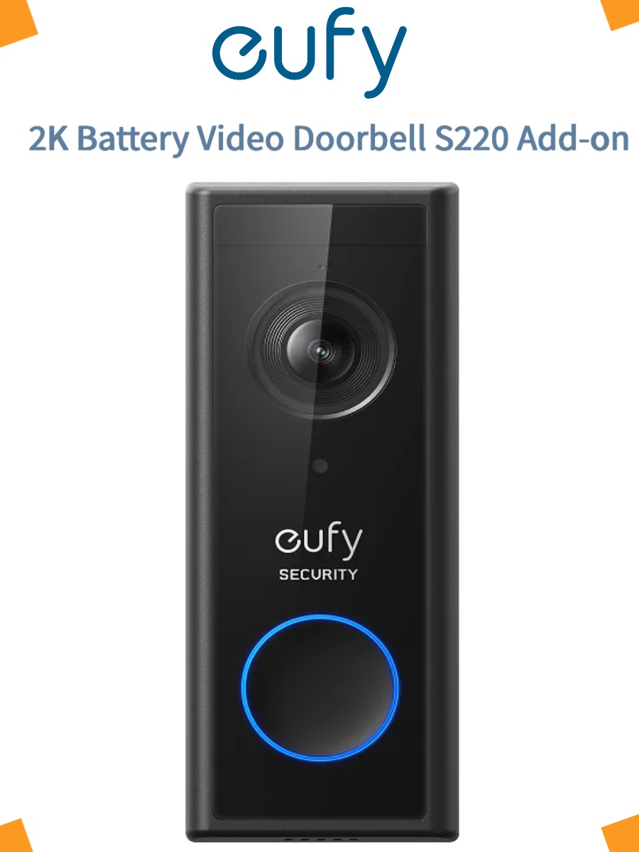 Видеозвонок Eufy 2K Battery Video Doorbell S220 Add-on дополнительный черный (T82101W1)