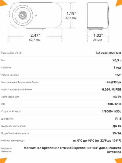 Варианты Монтажа - Магнитное Крепление с точкой крепления 1/4" для внешнего штатива