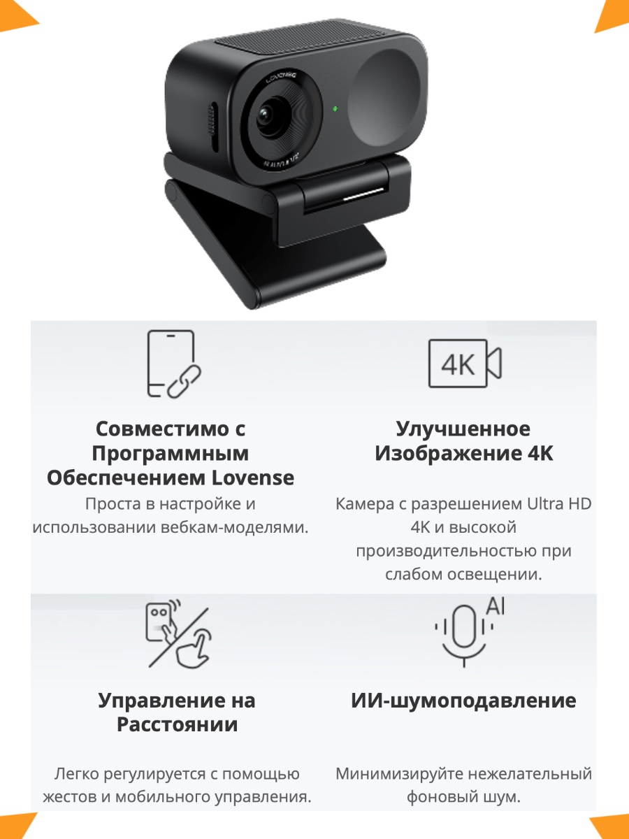 Веб-камера Lovense Webcam 2 с ИИ 4K для стрим и вебкам моделей черная