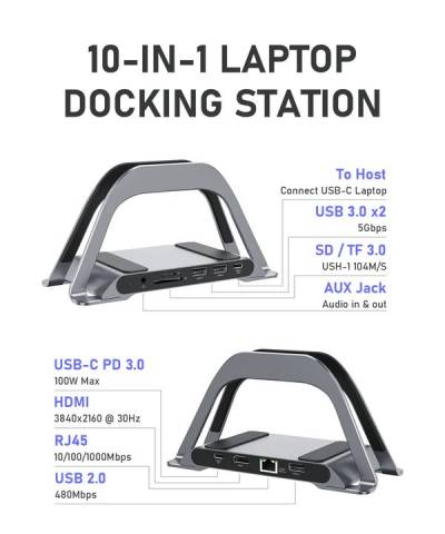 Вертикальная док-станция PULWTOP 10 в 1 подставка usb-хаб для MacBook (BD149A