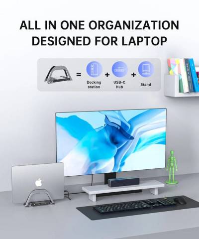 Совместимая док-станция с Dell также обладает двойной функцией, которая может удовлетворить различные потребности пользователей, а также выполнять функцию подставки для ноутбука (улучшение использования рабочего стола). Одна из функций заключается в том, что съемная подставка может служить подставкой для вашего ноутбука, помогая увеличить пространство, создать больше рабочего места и повысить вашу производительность.