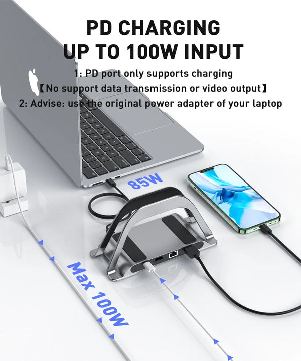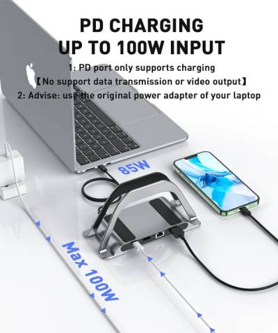 Разъем для зарядки PD позволяет быстро и легко заряжать MacBook или другие устройства через порт USB-C, а также обеспечивать дополнительное питание жесткого диска. Док-станция Type-C USB-C через порт Ethernet 10/100/1000 Мбит/с обеспечивает стабильный доступ в Интернет, и сигнал не прерывается, гарантируя стабильное Ethernet-соединение.