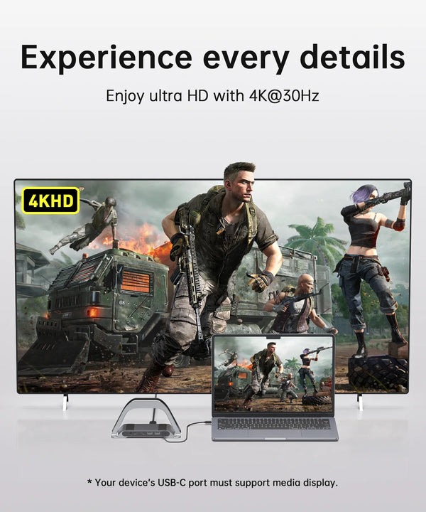 Порт HDMI USB-C обеспечивает вывод изображения до 4K@60Hz или Full HD 3840x2160 30Hz, что позволяет идеально дублировать или расширять изображение на HDTV, монитор или проектор. Подходит для просмотра фильмов в формате Full HD, 3D-игр, офисных совещаний и развлечений. Просматривайте веб-страницы, смотрите видеоролики, передавайте данные — все в одном устройстве. Обеспечивает яркую синхронизацию видео.