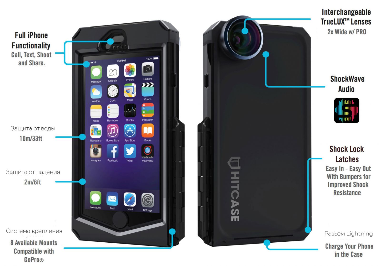 С чехлом Hitcase Pro вы сможете заснять на память все самые яркие моменты вашей жизни и для этого не требуется покупать отдельные камеры. Чехол полностью заменит так популярную GoPro.