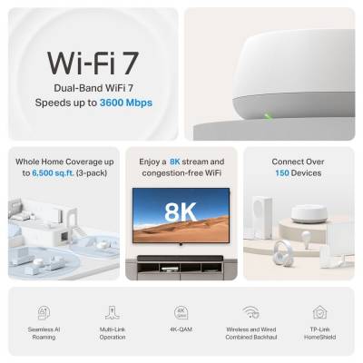 TP-LINK Deco BE22 — это система Wi-Fi 7 Mesh, обеспечивающая стабильное и быстрое беспроводное соединение по всему дому. Этот маршрутизатор поддерживает ряд современных технологий, таких как OFDMA, MLO и 4K-QAM, которые повышают производительность сети и качество соединения. Deco BE22 отлично подходит как для семей, так и для удаленных сотрудников, которым требуется надежное и быстрое подключение к Интернету без перебоев.