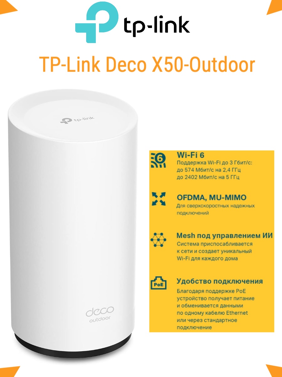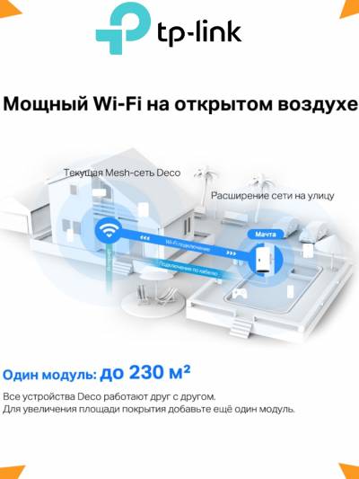 Устройства Deco предназначены для разгрузки сетей с высокой плотностью клиентов. К Deco X50-Outdoor можно подключить свыше 150 гаджетов без снижения производительности.