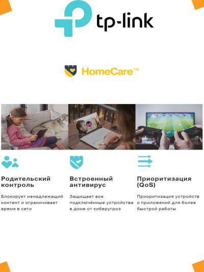 TP-Link HomeCare заботится о безопасности вашей сети и позволяет планировать и управлять подключениями. HomeCare включает встроенную защиту от вирусов Trend Micro на три года.